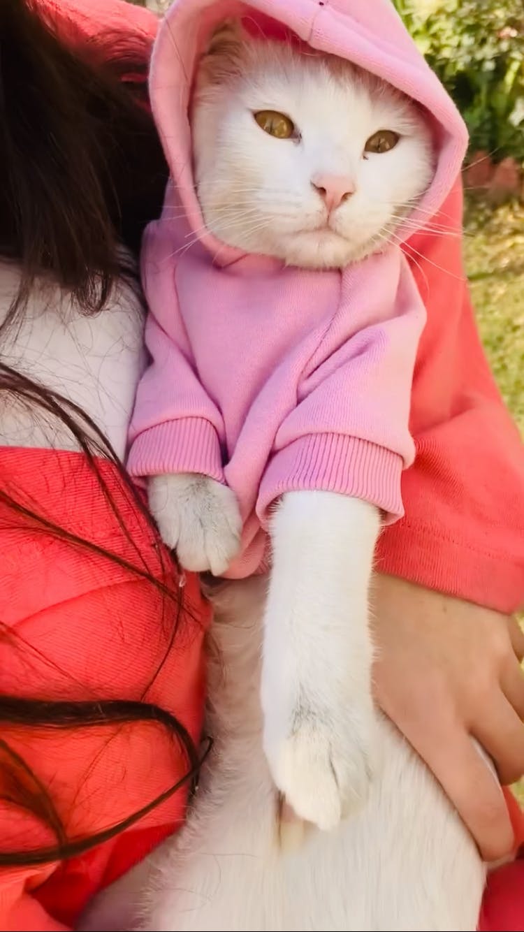 Hina butt I’ve never seen my cat so comfortable in any clothing item before. She actually runs to wear this hoodie now. Thank you Bow Point for thinking about pets with so much love